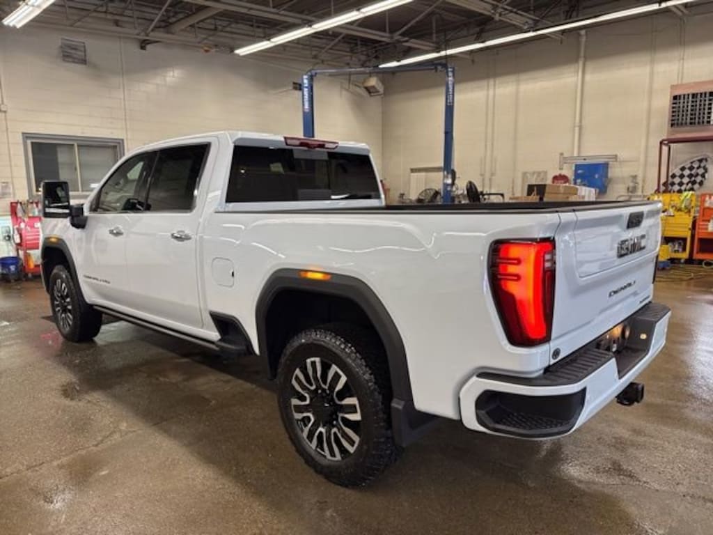 Glacier White Tricoat 2026 GMC Sierra 2500HD Denali Ultimate 4WD 10-Speed Automatic Duramax 6.6L V8 Turbodiesel 10-Speed Automatic, 4WD, Alpine Umber Leather.