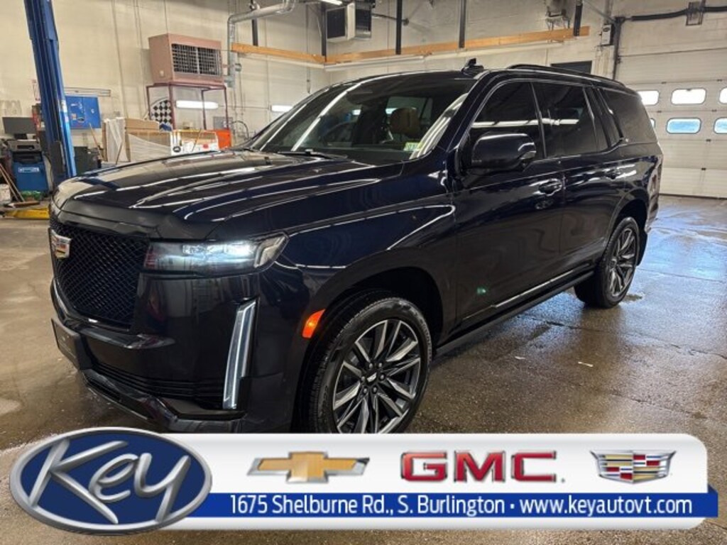 Key Chevrolet Burlington is proud to present you with another True Market Priced Pre-Owned Vehicle. Transparent Pricing Of $ 67999 !! This 2022 Cadillac Escalade Sport is loaded with the following Factory Options: 4WD and Brandy With Very Dark Atmosphere Accents Leather Preferred Equipment Group 1SC (Adaptive Cruise Control, AKG Studio 19-Speaker Audio System, Automatic Seat Belt Tightening, Automatic Stop/Start, Body-Color Door Handles, Door Lock & Latch Shields, Electronic Limited-Slip Differential, Enhanced Automatic Emergency Braking, Enhanced Automatic Parking Assist, Glass Breakage Sensor, Hitch Guidance w/Hitch View, Integrated Trailer Brake Controller, Power Panoramic Tilt-Sliding Sunroof, Rear Camera Mirror, Rear Camera Mirror Washer, Rear Cross Traffic Alert, Reconfigurable Full-Color Head-Up Display, Reverse Automatic Braking, Running Board Assist Steps, Smart Trailer Integration Indicator, Start/Stop System Disable Button, Theft-Deterrent Alarm System, Trailer Side Blind Zone Alert, Vehicle Inclination Sensor, and Vehicle Interior Movement Sensor), Touring Package (Air Ride Adaptive Suspension, Illuminating Front & Rear Sill Plates, and Soft Closing Front & Rear Doors), 4WD, Brandy With Very Dark Atmosphere Accents Leather, 16.9 Diagonal OLED Infotainment Screen, 19 Speakers, 1st 2nd & 3rd Row All-Weather Floor Mats (LPO), 2-Presets Memory For Driver Seat Adjuster, 3.23 Axle Ratio, 3rd row seats: split-bench, 4-Wheel Disc Brakes, 8-Way Power Driver Seat Adjuster, 8-Way Power Front Passenger Seat Adjuster, ABS brakes, Adaptive suspension, Air Conditioning, Alloy wheels, AM/FM radio: SiriusXM with 360L, Apple CarPlay/Android Auto, Audio memory, Auto High-beam Headlights, Auto tilt-away steering wheel, Auto-dimming door mirrors, Auto-dimming Rear-View mirror, Automatic temperature control, Brake assist, Bumpers: body-color, Compass, Delay-off headlights, Driver door bin, Driver vanity mirror, Dual front impact airbags, Dual front side impact airbags, Electronic Stability Control, Emergency communication system: OnStar and Cadillac connected services capable, Four wheel independent suspension, Front anti-roll bar, Front Bucket Seats, Front Center Armrest w/Storage, Front dual zone A/C, Front License Plate Bracket, Front reading lights, Fully automatic headlights, Garage door transmitter, HD Radio, Heads-Up Display, Heated & Ventilated Driver & Front Passenger Seats, Heated door mirrors, Heated Driver & Front Passenger Seats, Heated front seats, Heated rear seats, Heated steering wheel, Illuminated entry, Leather Seating Surfaces w/Precision Perf Inserts, Leather steering wheel, Low tire pressure warning, Magnetic Ride Control Suspension, Memory seat, Navigation System, Not Equipped w/4-Way Driver & Fr Pass Pwr Lumbar, Not Equipped w/Steering Column Lock, Occupant sensing airbag, Outside temperature display, Overhead airbag, Overhead console, Panic alarm, Passenger door bin, Passenger vanity mirror, Power door mirrors, Power driver seat, Power Liftgate, Power moonroof, Power passenger seat, Power steering, Power windows, Power-Retractable Assist Steps, Radio data system, Radio: AM/FM/SiriusXM w/Navigation, Rain sensing wipers, Rear air conditioning, Rear anti-roll bar, Rear reading lights, Rear window defroster, Rear window wiper, Remote keyless entry, Roof rack: rails only, Security system, SiriusXM w/360L, Speed control, Split folding rear seat, Spoiler, Steering wheel memory, Steering