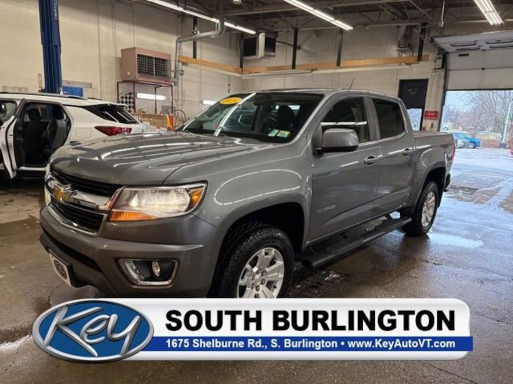 Key Chevrolet Burlington is proud to present you with another True Market Priced Pre-Owned Vehicle. Transparent Pricing Of $ 25999 !! This 2019 Chevrolet Colorado LT is loaded with the following Factory Options: 4WD Heavy-Duty Trailering Package, LT Convenience Package (EZ-Lift & Lower Tailgate, Front Fog Lamps, Manual Rear-Sliding Window, Rear-Window Electric Defogger, and Remote Vehicle Starter System), Preferred Equipment Group 4LT, 4WD, 2 USB Data Ports w/SD Card Reader, 3.42 Rear Axle Ratio, 4-Wheel Disc Brakes, 6 Speakers, 6-Speaker Audio System Feature, ABS brakes, Air Conditioning, Alloy wheels, AM/FM radio: SiriusXM, Apple CarPlay, Automatic Locking Rear Differential, Black Spray-On Bedliner w/Chevrolet Logo, Bose Premium 7-Speaker Audio System Feature, Bumpers: body-color, Cloth Seat Trim, Compass, Delay-off headlights, Driver 6-Way Power Seat Adjuster, Driver door bin, Driver vanity mirror, Dual front impact airbags, Dual front side impact airbags, Electronic Stability Control, Exterior Parking Camera Rear, Front anti-roll bar, Front Bucket Seats, Front Center Armrest, Front License Plate Kit, Front reading lights, Front wheel independent suspension, Fully automatic headlights, HD Radio, Illuminated entry, Low tire pressure warning, Occupant sensing airbag, Outside Heated Power-Adjustable Body-Color Mirrors, Outside temperature display, Overhead airbag, Overhead console, Panic alarm, Passenger door bin, Passenger vanity mirror, Power door mirrors, Power driver seat, Power steering, Power windows, Premium audio system: Chevrolet Infotainment System, Radio data system, Radio: Chevrolet Infotainment 3 Plus System, Radio: Chevrolet Infotainment 3 Premium System, Rear reading lights, Rear seat center armrest, Rear step bumper, Remote keyless entry, Security system, SiriusXM Radio, Speed control, Speed-sensing steering, Steering wheel mounted audio controls, Tachometer, Telescoping steering wheel, Tilt steering wheel, Tow/Haul Mode, Traction control, Trip computer, Variably intermittent wipers, and Wheels: 17 x 8 Blade Silver Metallic Cast Alloy!!