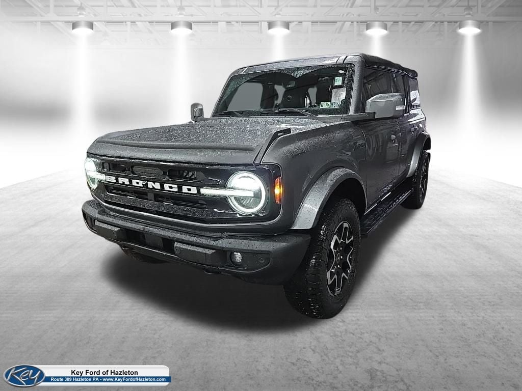 KEY FORD OF HAZLETON is proud to present you with another True Market Priced Pre-Owned Vehicle. Transparent Pricing Of $ 34995 !! This 2022 Ford Bronco Outer Banks is loaded with the following Factory Options: 18" Bright Machined Aluminum Wheels, 4-Wheel Disc Brakes, 4.27 Axle Ratio, 6 Speakers, ABS brakes, Air Conditioning, Alloy wheels, AM/FM radio: SiriusXM with 360L, AM/FM Stereo, Auto High-beam Headlights, Auto-dimming Rear-View mirror, Automatic temperature control, Brake assist, Compass, Connected Navigation, Delay-off headlights, Driver door bin, Driver vanity mirror, Dual front impact airbags, Dual front side impact airbags, Electronic Stability Control, Emergency communication system: 911 Assist, Exterior Parking Camera Rear, Front anti-roll bar, Front Bucket Seats, Front Center Armrest, Front dual zone A/C, Front fog lights, Front reading lights, Front wheel independent suspension, Fully automatic headlights, Heated Cloth Bucket Seats, Heated door mirrors, Heated front seats, Illuminated entry, Integrated roll-over protection, Leather Shift Knob, Low tire pressure warning, Navigation system: Connected Navigation, Occupant sensing airbag, Outside temperature display, Overhead airbag, Overhead console, Panic alarm, Passenger door bin, Passenger vanity mirror, Power door mirrors, Power steering, Power windows, Radio data system, Remote keyless entry, Security system, SiriusXM Radio w/360L, Speed control, Split folding rear seat, Steering wheel mounted audio controls, SYNC 4, Tachometer, Telescoping steering wheel, Tilt steering wheel, Traction control, Trip computer, Variably intermittent wipers, and Voltmeter!!