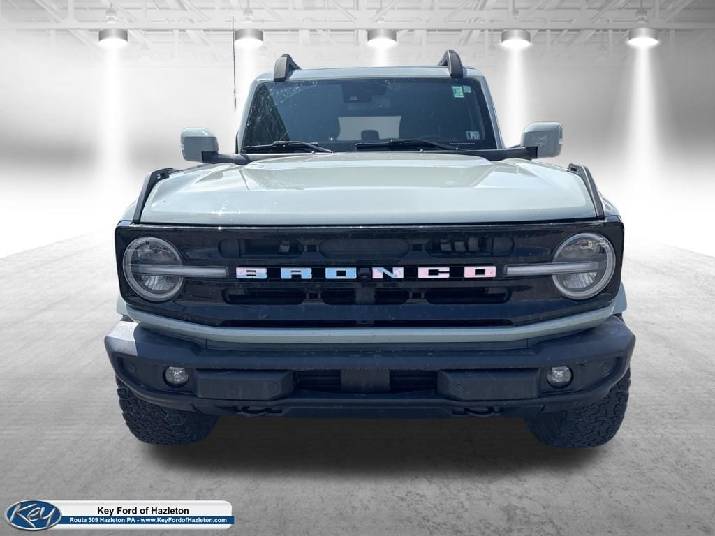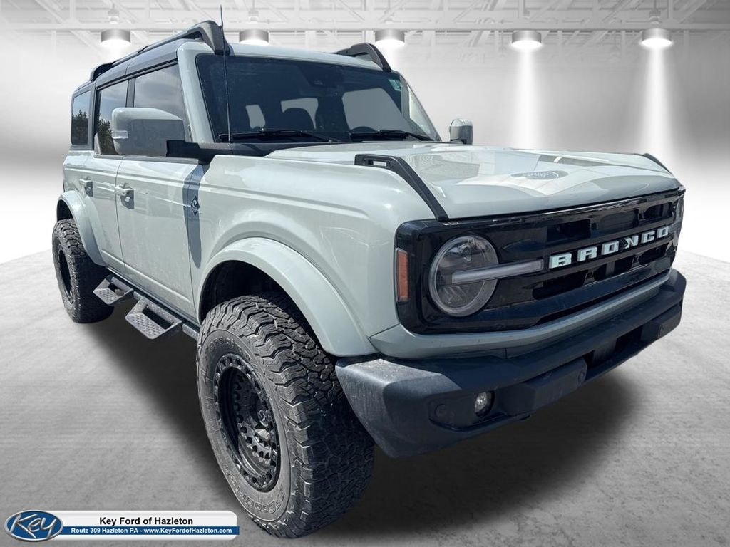 KEY FORD OF HAZLETON is proud to present you with another True Market Priced Pre-Owned Vehicle. Transparent Pricing Of $ 43099 !! This 2023 Ford Bronco Outer Banks is loaded with the following Factory Options: Equipment Group 313A High Package (12" LCD Capacitive Touchscreen w/Swipe Capability, 360-Degree Camera, Additional Sound Deadening, Front Parking Sensors, Information on Demand Panel, and Sideview Mirrors), 18" Bright Machined Aluminum Wheels, 3.73 Axle Ratio, 4-Wheel Disc Brakes, 4.27 Final Drive Ratio w/Rear Locking Differential, 7 Speakers, ABS brakes, Air Conditioning, Alloy wheels, AM/FM radio: SiriusXM with 360L, AM/FM Stereo, Auto High-beam Headlights, Auto-dimming Rear-View mirror, Automatic temperature control, Auxiliary Switches, Black Roof Rails w/Crossbars, Brake assist, Carbonized Gray Molded-In-Color Hard Top, Compass, Connected Navigation, Delay-off headlights, Driver door bin, Driver vanity mirror, Dual front impact airbags, Dual front side impact airbags, Electronic Stability Control, Emergency communication system: 911 Assist, Exterior Parking Camera Rear, Front anti-roll bar, Front Bucket Seats, Front Center Armrest, Front dual zone A/C, Front fog lights, Front License Plate Bracket, Front reading lights, Front Row Top Panels Storage Bag, Front wheel independent suspension, Fully automatic headlights, Hard Top Sound Deadening Headliner, Heated door mirrors, Heated front seats, Heated Leather-Trimmed/Vinyl Bucket Seats, Illuminated entry, Integrated roll-over protection, Leather Shift Knob, Low tire pressure warning, Navigation system: Connected Navigation, Occupant sensing airbag, Outside temperature display, Overhead airbag, Overhead console, Panic alarm, Passenger door bin, Passenger vanity mirror, Power door mirrors, Power steering, Power windows, Radio data system, Radio: 6 Speakers w/Subwoofer Delete, Rear-Window Defroster & Washer, Remote keyless entry, Removable Hoop Step, Security system, SiriusXM Radio w/360L, Slide-Out Tailgate, Speed control, Split folding rear seat, Steering wheel mounted audio controls, SYNC 4, Tachometer, Telescoping steering wheel, Tilt steering wheel, Traction control, Trip computer, Variably intermittent wipers, and Voltmeter!!