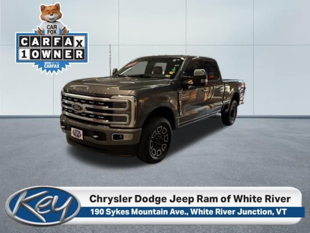 Key Chrysler Dodge Jeep Ram of White River is proud to present you with another True Market Priced Pre-Owned Vehicle. Transparent Pricing Of $ 78295 !! This 2024 Ford F-250SD Platinum is loaded with the following Factory Options: 4WD F-250 >10K GVWR Package, FX4 Off-Road Package (Hill Descent Control, Off-Road Specifically Tuned Shock Absorbers, and Unique FX4 Off-Road Box Decal), 4WD, 4-Wheel Disc Brakes, ABS brakes, Adjustable pedals, Air Conditioning, Alloy wheels, AM/FM radio: SiriusXM with 360L, Auto High-beam Headlights, Auto tilt-away steering wheel, Auto-dimming Rear-View mirror, Automatic temperature control, Brake assist, Compass, Delay-off headlights, Driver door bin, Driver vanity mirror, Dual front impact airbags, Dual front side impact airbags, Electronic Stability Control, Emergency communication system: SYNC 4 911 Assist, Exterior Parking Camera Rear, Flow-Through Console, Front anti-roll bar, Front Bucket Seats, Front Center Armrest, Front dual zone A/C, Front fog lights, Front reading lights, Fully automatic headlights, Garage door transmitter, Heated door mirrors, Heated front seats, Heated rear seats, Heated steering wheel, Illuminated entry, Leather steering wheel, LED Roof Clearance Lights, Low tire pressure warning, Max Recline Seats, Memory seat, Navigation system: Connected Navigation (includes complimentary 1-year trial), Outside temperature display, Overhead airbag, Overhead console, Panic alarm, Passenger door bin, Passenger vanity mirror, Pedal memory, Power door mirrors, Power driver seat, Power passenger seat, Power steering, Power windows, Radio: B&O Unleashed Sound System by Bang & Olufsen, Rain sensing wipers, Rapid-Heat Supplemental Cab Heater, Rear reading lights, Rear seat center armrest, Rear step bumper, Rear window defroster, Remote keyless entry, Security system, SiriusXM Radio w/360L, Speed control, Split folding rear seat, Steering wheel memory, Steering wheel mounted audio controls, SYNC 4 w/Enhanced Voice Recognition, Tachometer, Telescoping steering wheel, Tilt steering wheel, Traction control, Trip computer, Turn signal indicator mirrors, Variably intermittent wipers, and Ventilated front seats!!