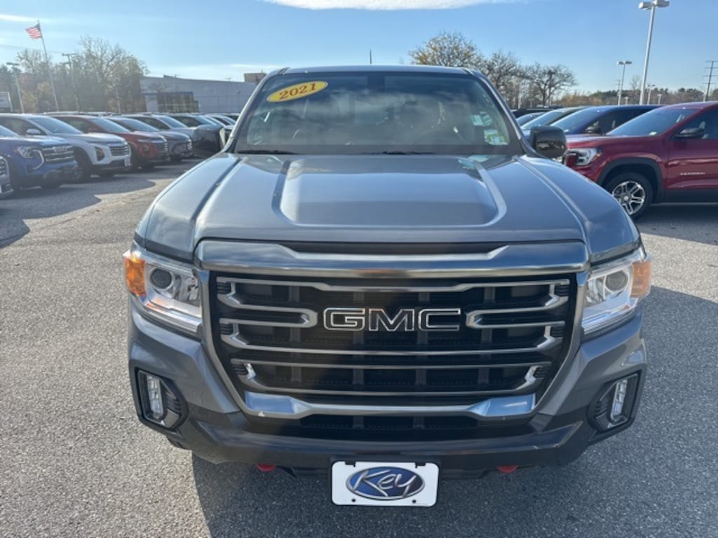 Key Chevrolet Burlington is proud to present you with another True Market Priced Pre-Owned Vehicle. Transparent Pricing Of $ 25999 !! This 2021 GMC Canyon AT4 w/Cloth is loaded with the following Factory Options: 4WD Preferred Equipment Group 4SB (Hitch Guidance and Tow/Haul Mode), Trailering Package, 4WD, 3.42 Rear Axle Ratio, 3" Round Black Off-Road Step Bars (LPO), 4-Wheel Disc Brakes, 6 Speakers, 6-Speaker Audio System Feature, ABS brakes, Air Conditioning, Alloy wheels, AM/FM radio: SiriusXM, Apple CarPlay/Android Auto, Auto-dimming Rear-View mirror, Automatic temperature control, Bumpers: body-color, Cloth Seat Trim, Compass, Delay-off headlights, Driver 6-Way Power Seat Adjuster, Driver door bin, Driver Instrument Information Enhanced Display, Driver vanity mirror, Dual front impact airbags, Dual front side impact airbags, Electronic Stability Control, Exterior Parking Camera Rear, Front anti-roll bar, Front Bucket Seats, Front Center Armrest, Front fog lights, Front License Plate Kit, Front reading lights, Front wheel independent suspension, Fully automatic headlights, HD Radio, Heated door mirrors, Heated Driver & Front Passenger Seats, Heated front seats, Heated Steering Wheel, Illuminated entry, Low tire pressure warning, Occupant sensing airbag, Outside temperature display, Overhead airbag, Overhead console, Panic alarm, Passenger door bin, Passenger vanity mirror, Power door mirrors, Power Driver Lumbar Control Seat Adjuster, Power driver seat, Power steering, Power windows, Premium audio system: GMC Infotainment System, Radio data system, Radio: AM/FM w/8" Diagonal Color Touch-Screen, Rear reading lights, Rear seat center armrest, Rear step bumper, Rear window defroster, Remote keyless entry, Security system, SiriusXM Radio, Speed control, Speed-sensing steering, Steering wheel mounted audio controls, Tachometer, Telescoping steering wheel, Tilt steering wheel, Traction control, Trip computer, Variably intermittent wipers, and Wheels: 17" x 8" Dark Argent Metallic!!